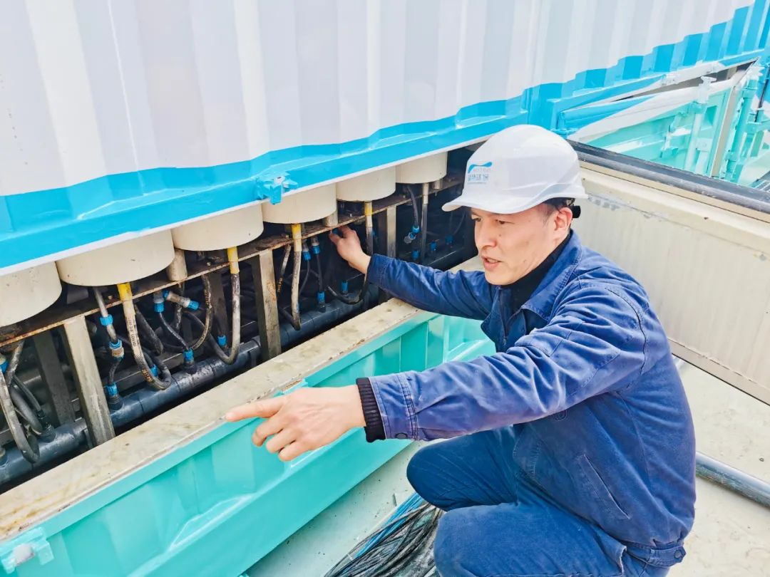 1月1日,張濤所在資陽項目廠區(qū)變壓器損壞造成設(shè)備急停,來電沖洗時發(fā)現(xiàn)兩臺設(shè)備膜柱均有大量刺穿、跳圈故障,為保證設(shè)備快速安全生產(chǎn),張濤即刻帶領(lǐng)項目人員加班加點(diǎn)維修、更換膜片,經(jīng)近15個小時高強(qiáng)度奮戰(zhàn),設(shè)備最終良好運(yùn)行,產(chǎn)水合格達(dá)標(biāo)。