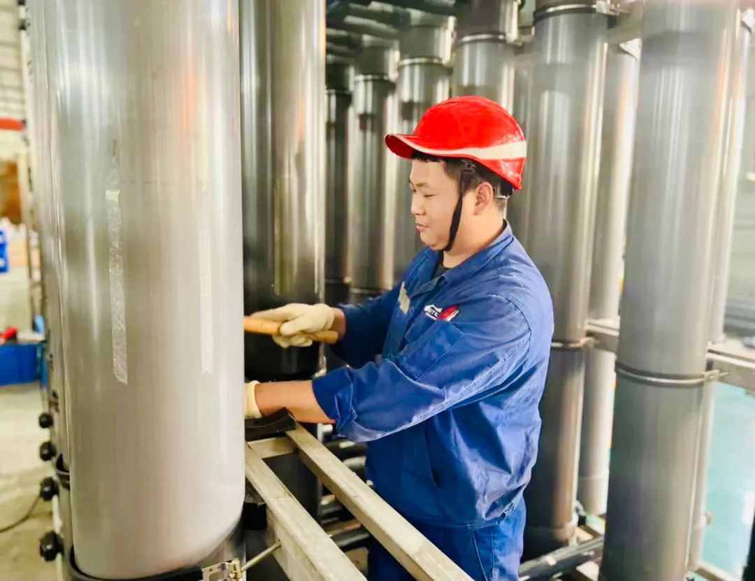 2月初恰逢春節(jié)假期,為確保項目生產,母寶貴犧牲小家保大家,堅持奮斗在一線,確保春節(jié)期間“三安全”達標。設備入場后,出現(xiàn)設備運行壓力過高,膜柱冒水,設備產水回收率達不到額定要求等問題,母寶貴主動帶領現(xiàn)場人員查找原因并維修膜柱,積極聯(lián)系調試部和膜車間人員到現(xiàn)場處理,最終設備良好運行。