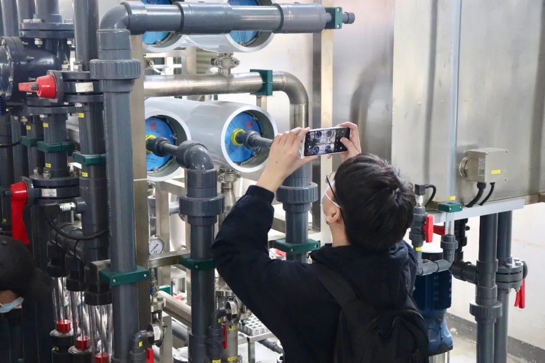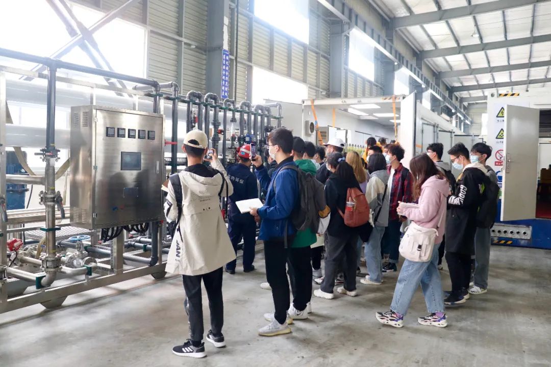 期間,副廠長(zhǎng)陳虎和車間主任伍文帶領(lǐng)學(xué)生參觀工廠,了解公司情況,給學(xué)生詳細(xì)介紹公司設(shè)備、技術(shù)及設(shè)備工作原理。而后學(xué)生們隨車到達(dá)仁壽濃縮液全量處理項(xiàng)目現(xiàn)場(chǎng),仁壽項(xiàng)目采用碩特環(huán)保自主研發(fā)的滲濾液濃縮液非蒸發(fā)全量處理工藝,運(yùn)維負(fù)責(zé)人帶領(lǐng)學(xué)生們參觀感受整個(gè)項(xiàng)目的全流程處理工藝,讓學(xué)生們對(duì)廢水處理工藝及處理設(shè)備有更全面了解。