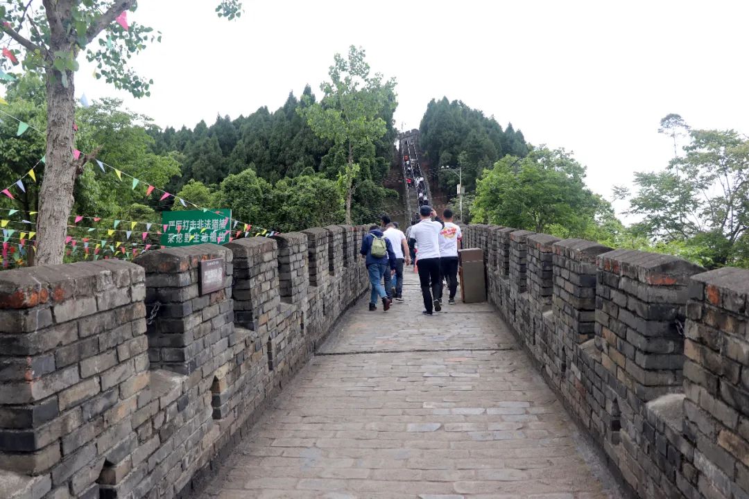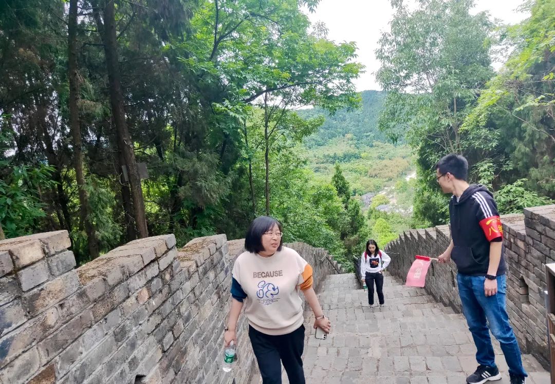 金龍長城全長約1680米,5個烽火臺,伏臥九泉山,從金龍湖景區(qū)大門向山脊延伸,到金龍寺,是中國目前規(guī)模最大的模擬長城。拾階而上,員工們呼吸著新鮮的空氣,感受著大自然的旖旎風(fēng)光,在歡聲笑語中向山頂一路攀登。層層疊疊的大山之中,一條長城之路隨著群山的起伏,蜿蜒而過,直通山頂,部分平時缺乏鍛煉的同事不久便氣喘吁吁,登山健將主動代背行囊,鼓勵的言語讓疲憊的同事再次打起精神,邁開腳步。有些同事一鼓作氣,按照活動規(guī)則,角逐前三,到達登峰,與金龍寺合影留念,成為同事們前行的標桿和榜樣。稍作休憩后,又有一些同事繼續(xù)出發(fā),發(fā)揚團隊精神,挑戰(zhàn)自我,問鼎金龍長城,一覽山間風(fēng)景。