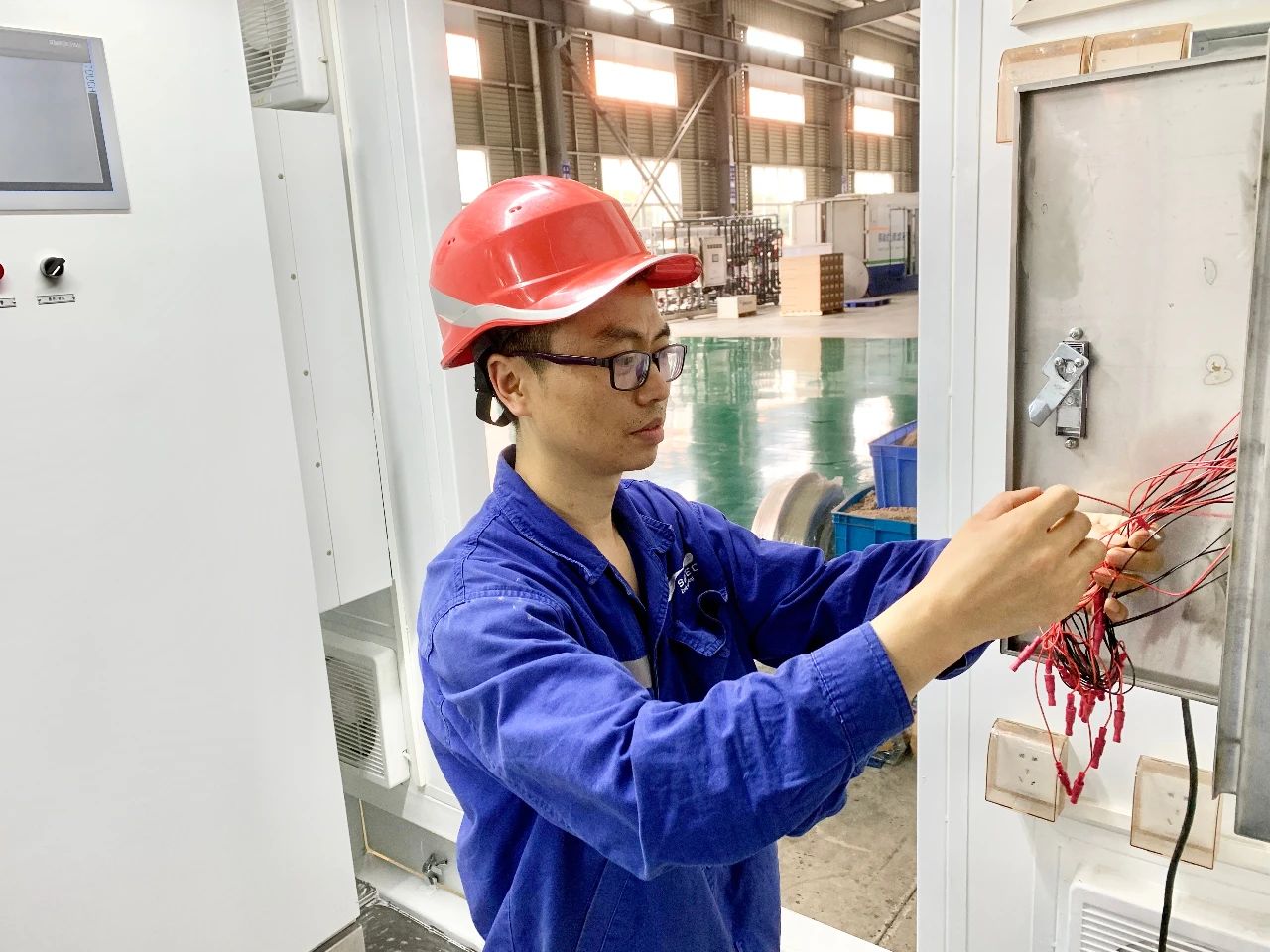 鐘洪成作為一名電氣裝配組長,工作積極,想法多樣。在參與公司自主研發(fā)、設(shè)計(jì)的電解氧化設(shè)備項(xiàng)目時(shí),由于大家缺乏對(duì)電解氧化設(shè)備的設(shè)計(jì)經(jīng)驗(yàn),裝配過程遇到了許多問題。然而,這一切并沒有難倒鐘洪成,他不斷探索,積極與設(shè)計(jì)人員溝通,最后找到了良好的解決方案,極大地提高了生產(chǎn)效率且降低了生產(chǎn)成本。