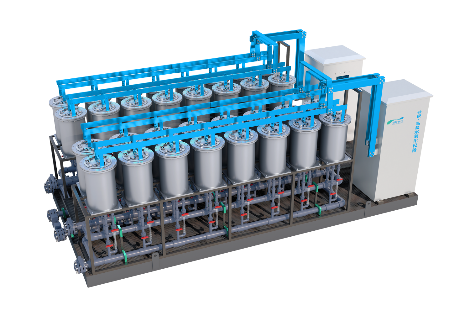 鈦極高鹽水氧化設(shè)備是一種可同時(shí)除有機(jī)物和氨氙的電化學(xué)氧化設(shè)備。本設(shè)備采用了含鈦復(fù)合陽(yáng)極材料和特殊反應(yīng)器結(jié)構(gòu)設(shè)計(jì),耐酸堿耐高電位腐蝕的能力強(qiáng),設(shè)備使用壽命長(zhǎng),適用于各類(lèi)高鹽高COD有機(jī)水的脫酸、高鹽含氨氨廢水的脫氫及色度處理。